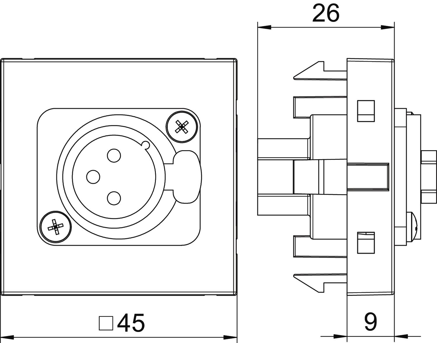 CO2 Footprint (GWP) Cradle-to-Gate 0,1531 kg CO2e / 1 Piece Colour Black-grey; RAL 7021 Combination Basic element with central cover plate Depth 9 mm Dimension 45x45mm Fastening type Lock Halogen-free no Height 45 mm Hinged cover no Labelling panel Without labelling panel Lamp-wire connector no Material Polycarbonate Outlet direction Straight Protection rating IP20 Strain relief option no Support ring yes Surface version Matt Transparent no Use XLR Width 45 mm With dust protection no With printed label no - All types