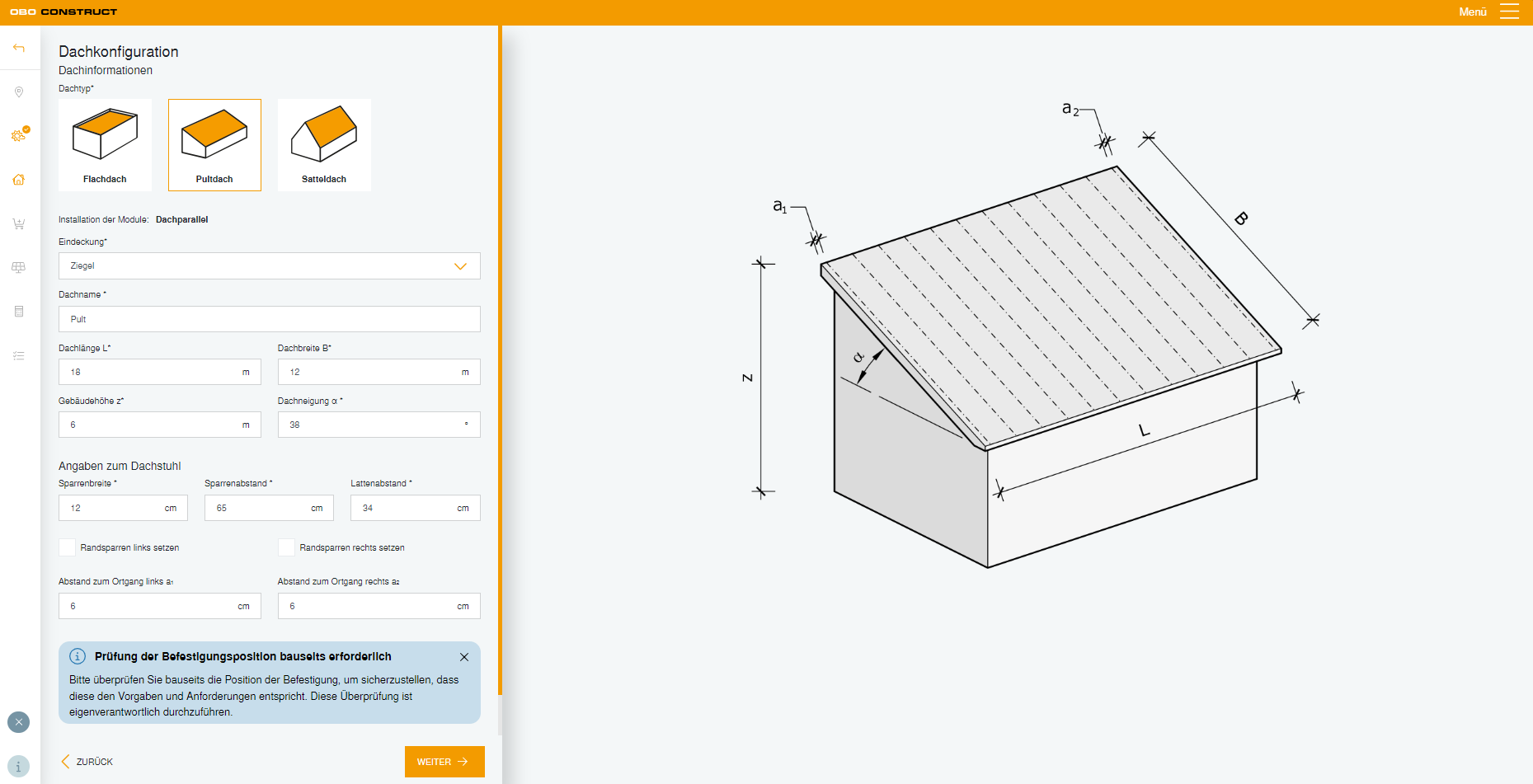 PV mounting systems have never been easier to plan: The OBO Construct tool for the Magic PV Solution makes it possible. The planning tool is intuitive and easy to use, and enables short planning processes. Find the right OBO PV mounting system for your project step by step – tailored to your specific needs and requirements.