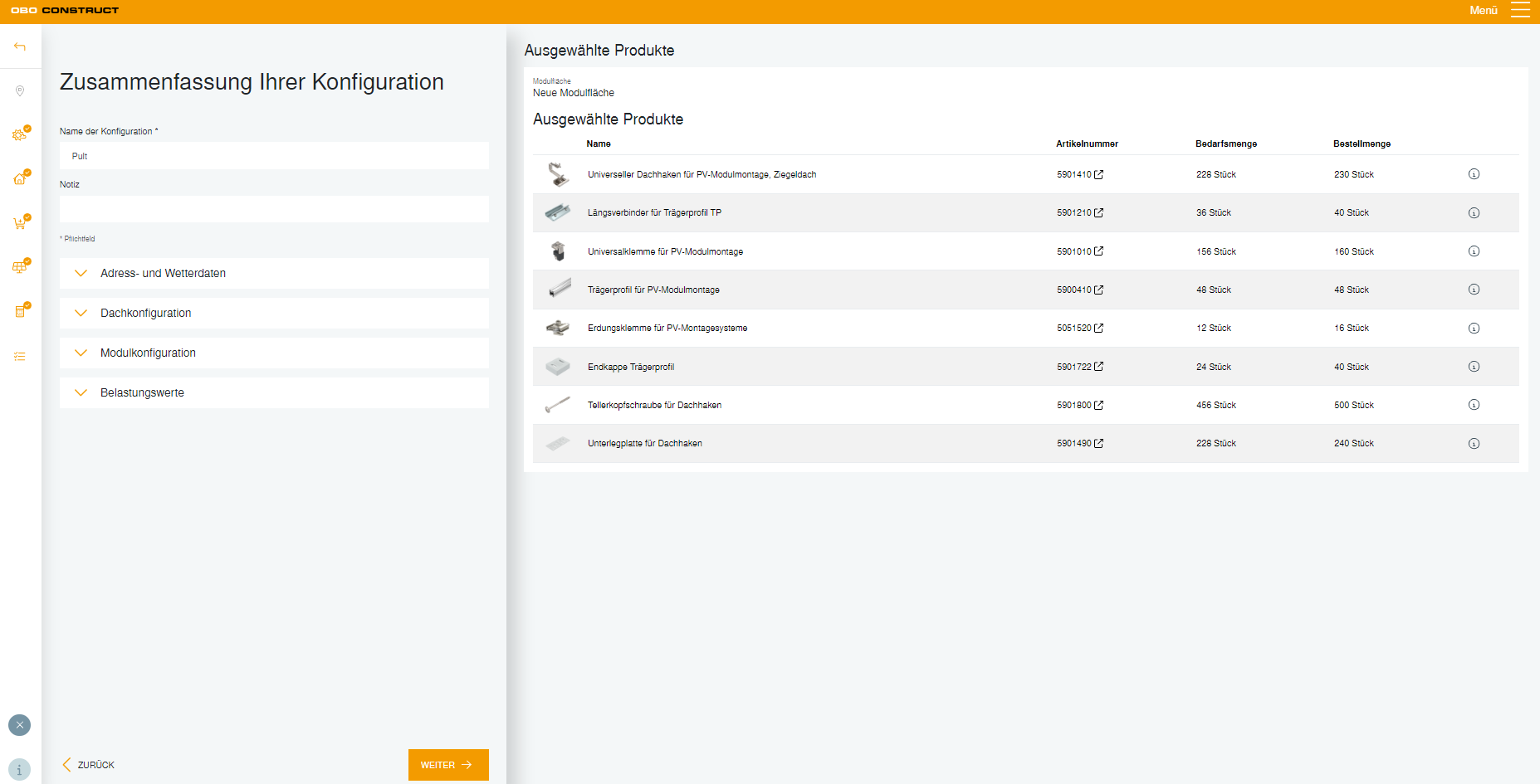 • The right PV mounting system in just a few clicks